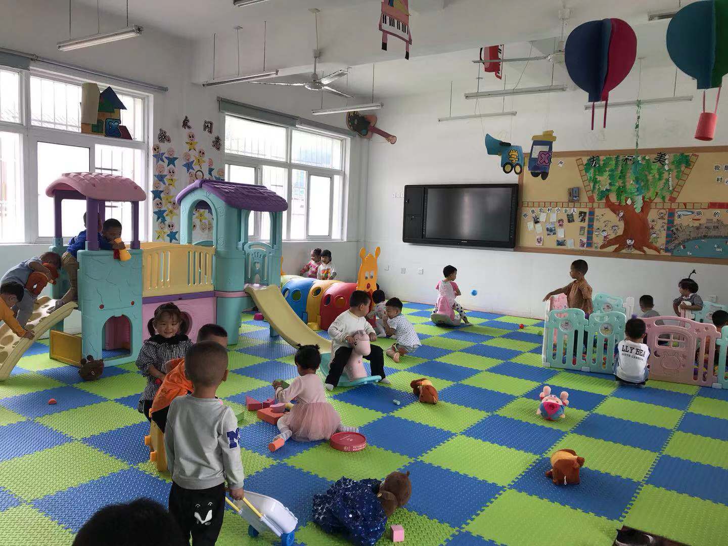 2019年8月,晶合前往位于安徽黄山的宏村学校,为幼儿园留守儿童送去了充满爱心的毛绒玩具、多功能滑梯、环保泡沫板等设备,给孩子们搭起一座凝聚满满温情的“儿童乐园”。五颜六色的设施与玩具填满了原本简陋冷清的活动室,也为小朋友们的童年填上了来自晶合的关心与牵挂。本次公益活动所用物资均为晶合工会举办家庭同乐日的活动富余品,让这场活动既饱含爱心,也践行着绿色环保理念。