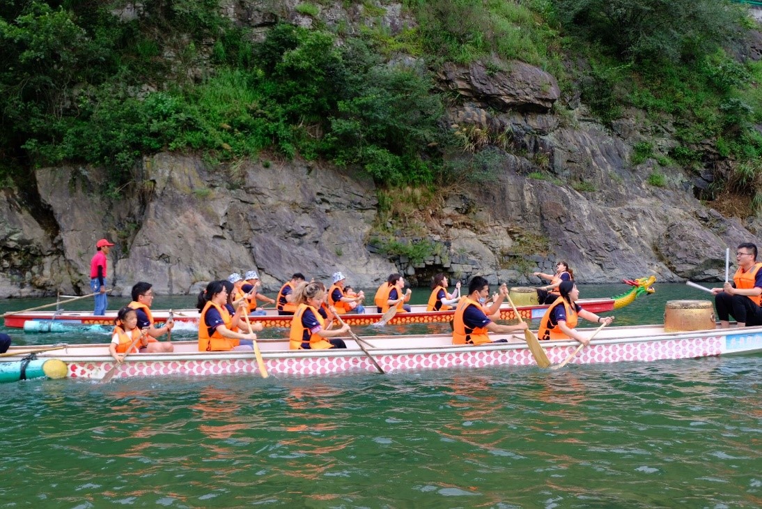 既然是团建,怎能少了团体项目,工会早已为大家安排上了赛龙舟,十人一组,两两PK。展现团队实力的时候到啦,队员跟着鼓手的节奏向着终点进发,一场趣味十足的龙舟赛将原本不熟悉的同仁凝聚在一起。