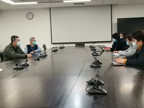 在企业的无尘室参观走廊中,社长刘菁了解了晶合生产的技术及生产车间的智能化情况。随后,双方一起参加了复工情况座谈会。