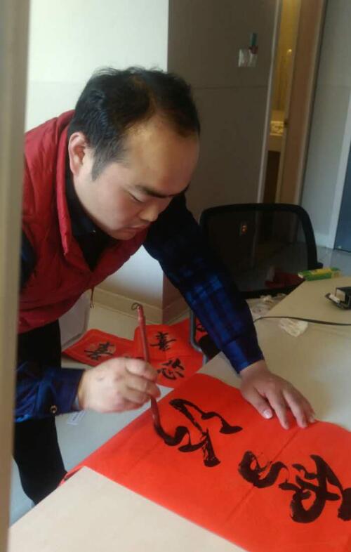 “古墨轻磨满几香,砚池新浴灿生光”。写春联的大师也来自我们晶合的员工,他就是之前的文学桂冠——扩散工程部张艳,一个“文武双全”的大才子。