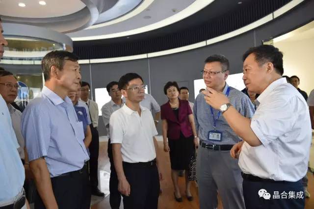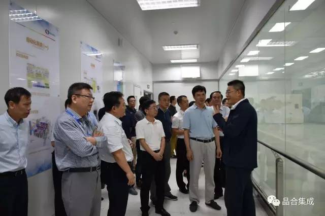 在参观晶合生产车间时,总经理向调研团介绍了无尘车间的布局及相关设备。而宋书记重点向大家介绍了晶合的制造设备,不仅价格昂贵,而且极具稀缺性,骄傲之情溢于言表。