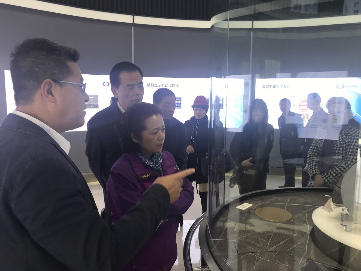2018年11月20日上午,为促进皖台之间的经济文化交流合作,省政协副主席孙丽芳,省政协常委、港澳台侨和外事委副主任、省台联会长陈清海等省政协台联界别活动调研组在合肥市政协副主席姚亚妹、新站区管委会副主任李志奎等市区相关部门领导陪同下,莅临晶合集成考察调研。晶合集成总经理黎湘鄂、党委书记朱晓娟等现场陪同。