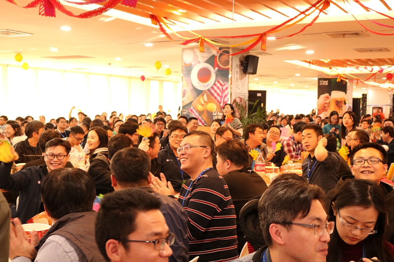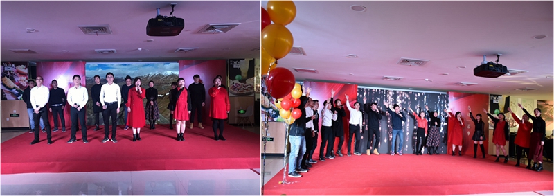 董事长陆祎肯定了公司这一年的付出和成果,并宣布了一个激动人心的好消息:年前公司会给每个人发一个大红包!这话音未落,便博得满堂喝彩!
